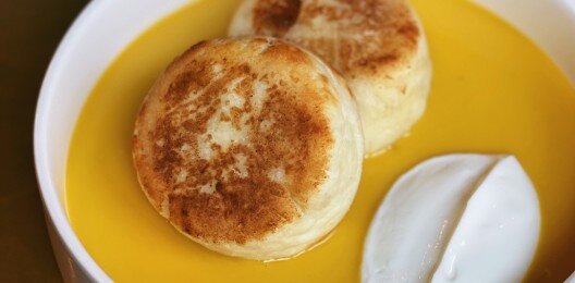 Большие сырники с соусом манго-личи