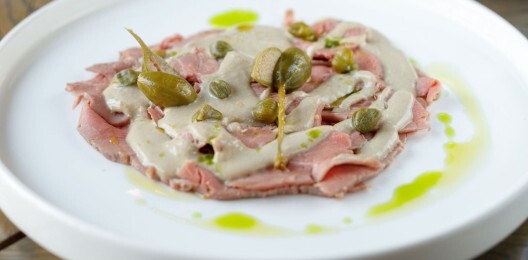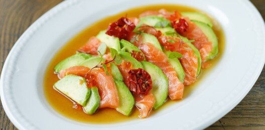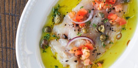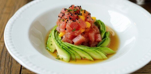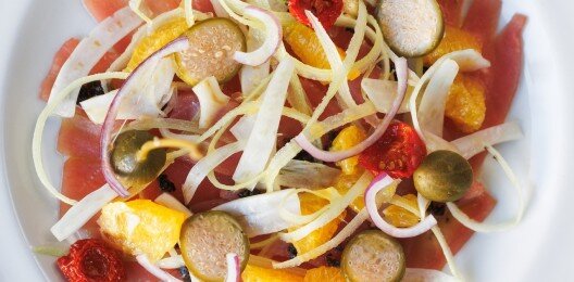 Карпаччо из тунца с апельсином, сельдереем и луком