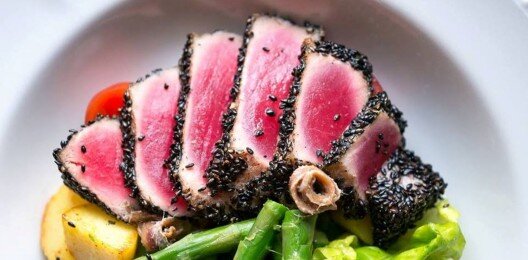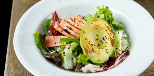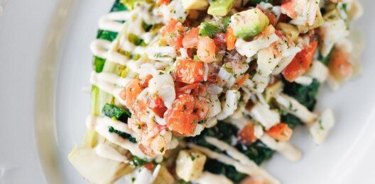 Салат из кальмаров, шпината и артишоков с майонезом из томатов