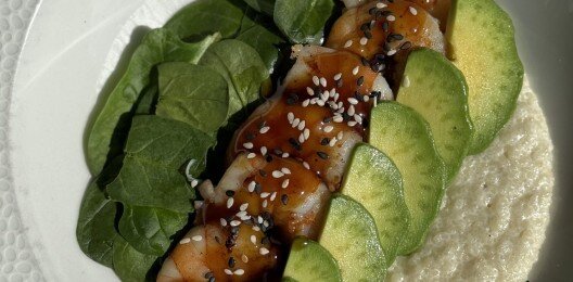 Кускус с креветками и авокадо