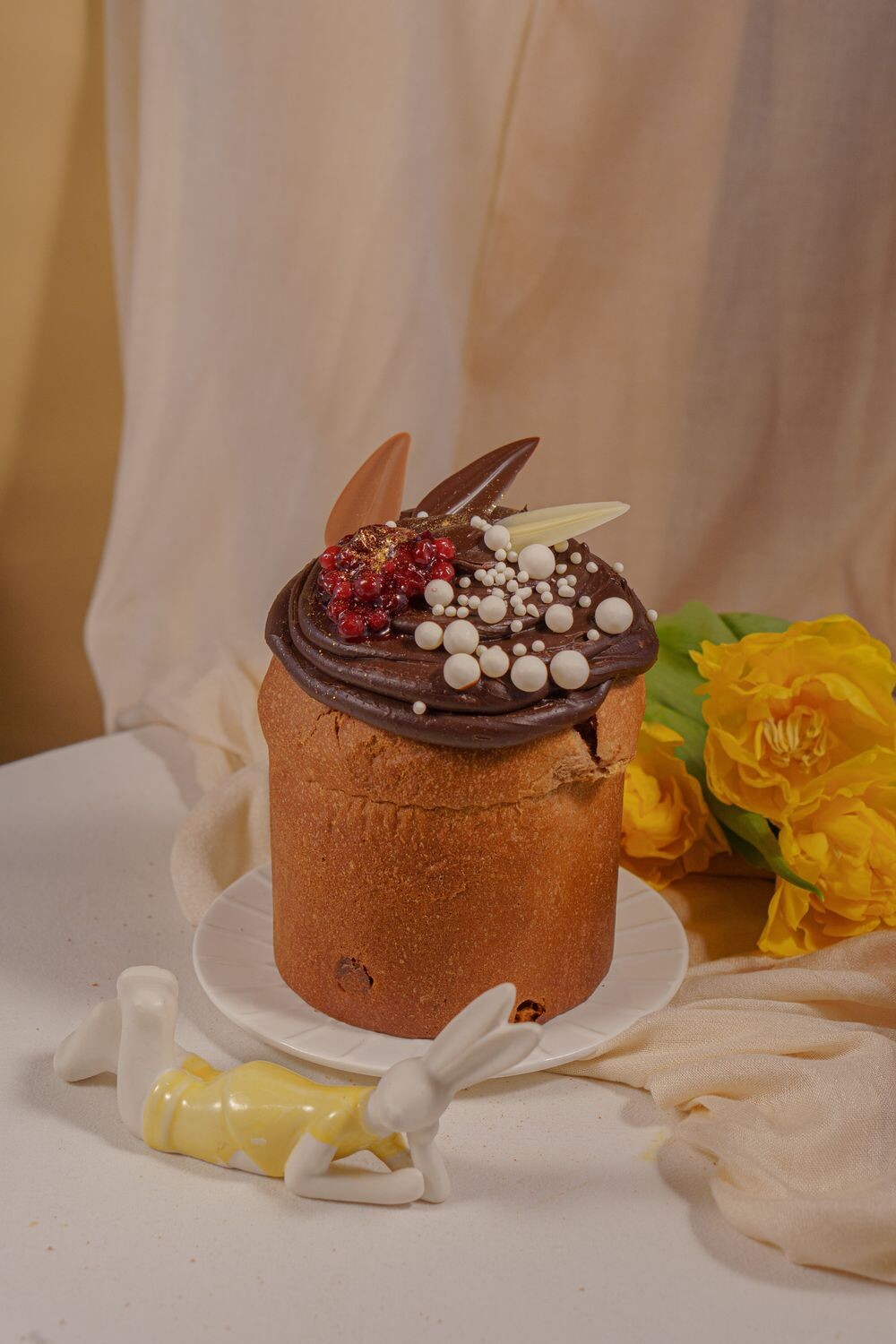 Декор: Ганаш из темного шоколада ,шоколадный и сахарный декор, клюква свежая в нейтральном геле.