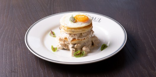 Панкейки с куриным филе и шампиньонами