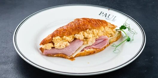 Круассан со скрэмблом, ветчиной и сыром